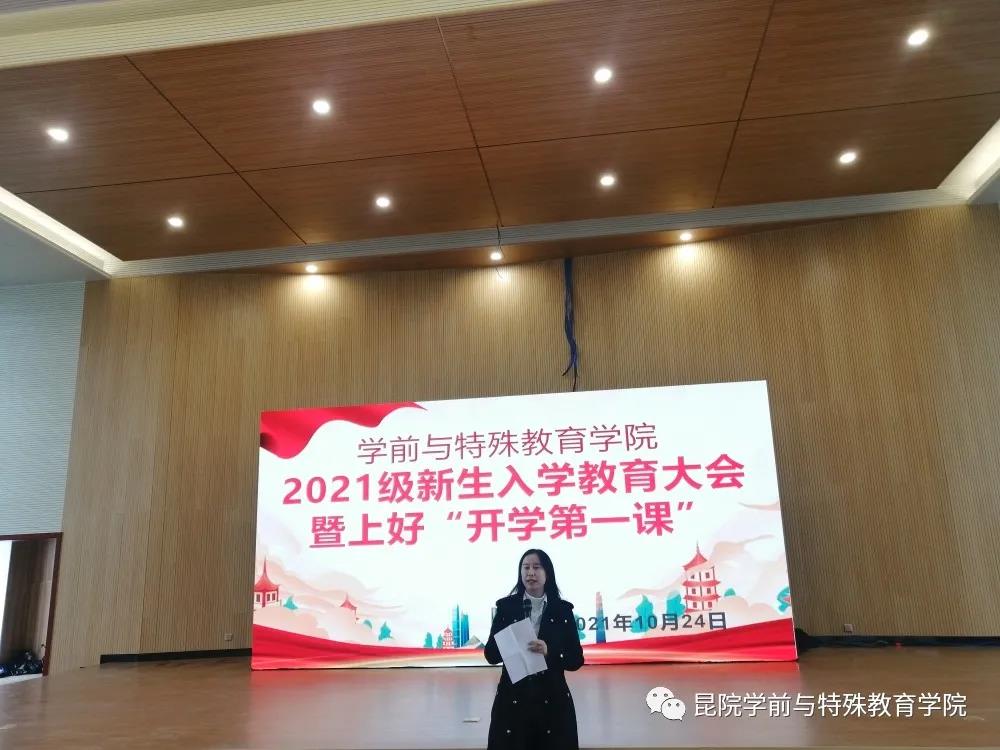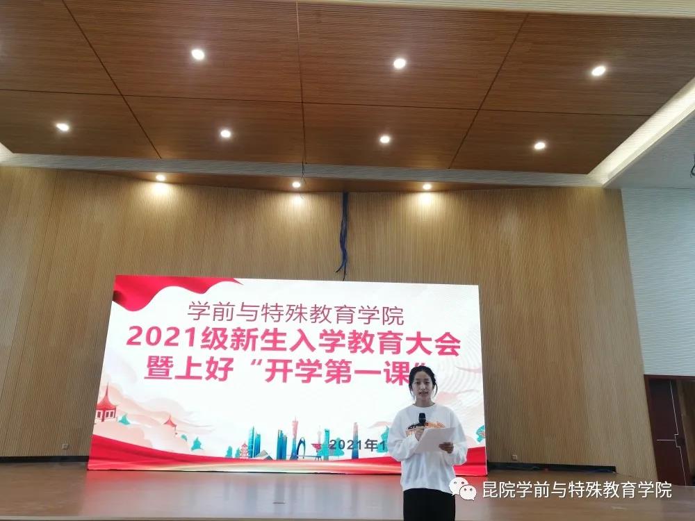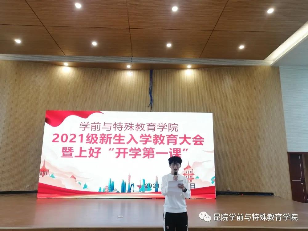 2021级学前教育本科三班王恰作为新生代表发言,她代表2021级新同学表达了踏入新校园的激动心情,表示将牢记习近平总书记的嘱托,肩负历史使命,让青春在不懈奋斗中绽放绚丽之花 。