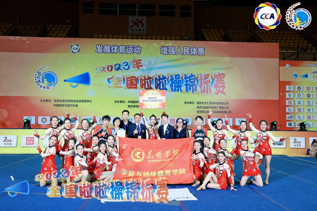 英国365集团公司“Jungle Warriors啦啦操队”在此次大赛中勇夺佳绩。在俱乐部青年乙组——小集体组花球自选动作项目、公开青年乙组——集体自由舞蹈自选动作项目中获得2项冠军,在公开青年乙组——小集体组花球自选动作项目中获得亚军,在公开青年乙组——大集体组花球自选动作项目中获得第四名。参赛过程中,Jungle Warriors啦啦操队员们充分展现了昆院学子斗志昂扬、勇于拼搏的竞技精神和团队精神,彰显了新时代老员工积极向上的良好风貌。
