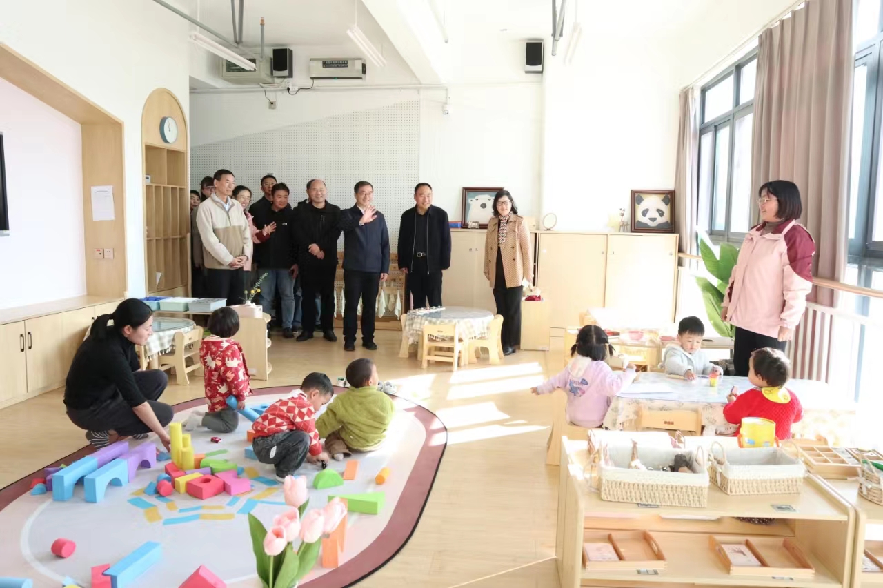 2023年11月23日上午,昆明市人大常委会党组副书记、副主任何健升带队到公司附属幼儿园就“托幼一体化”托育服务模式实践成果开展实地调研。公司党委书记金幼和接待了何健升主任一行,公司党委委员、副董事长郭华陪同调研。