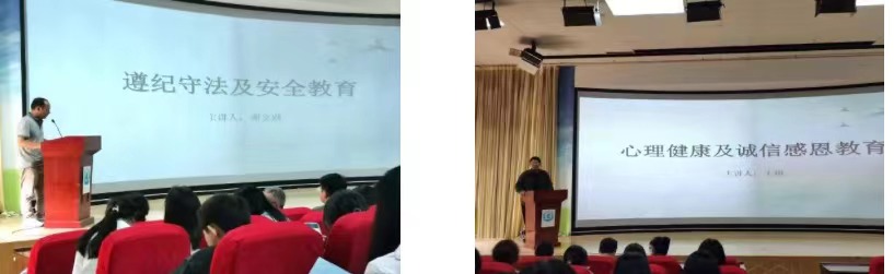 首先,辅导员邓文跃老师进行遵纪守法及安全教育,主要从遵纪守法、求职安全、电信诈骗三个方面开展教育。其次,王琪老师和尹艳波老师针对心理健康、诚信感恩、就业创业、离校工作等方面给毕业生近期毕业工作进行详细讲解与安排。