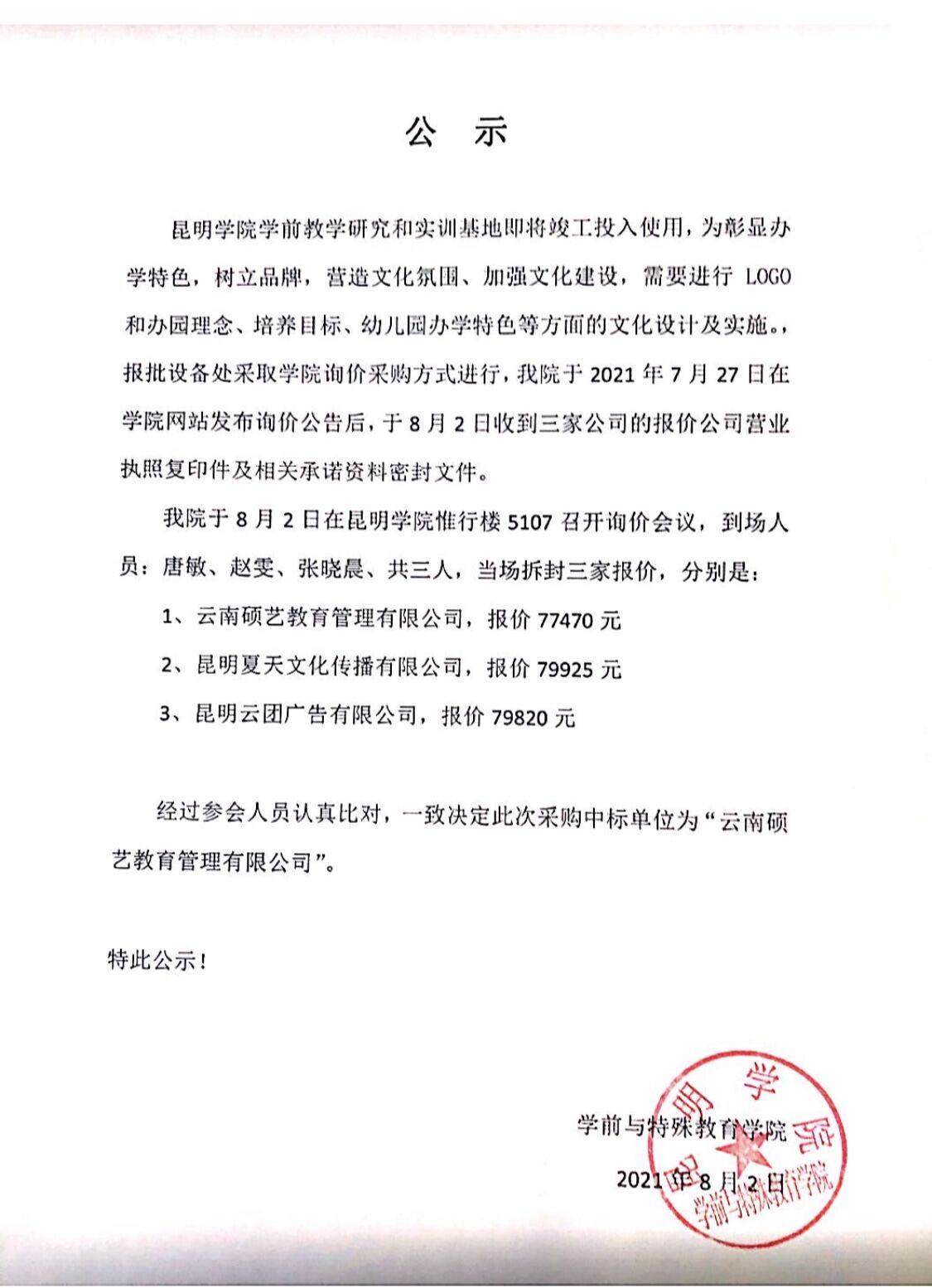 关于英国365集团公司学前教学研究和实训基地视觉导视项目采购中标单位的公示