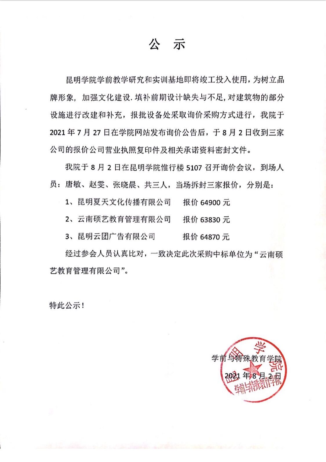 关于英国365集团公司学前教学研究和实训基地基础设施优化项目采购中标单位的公示