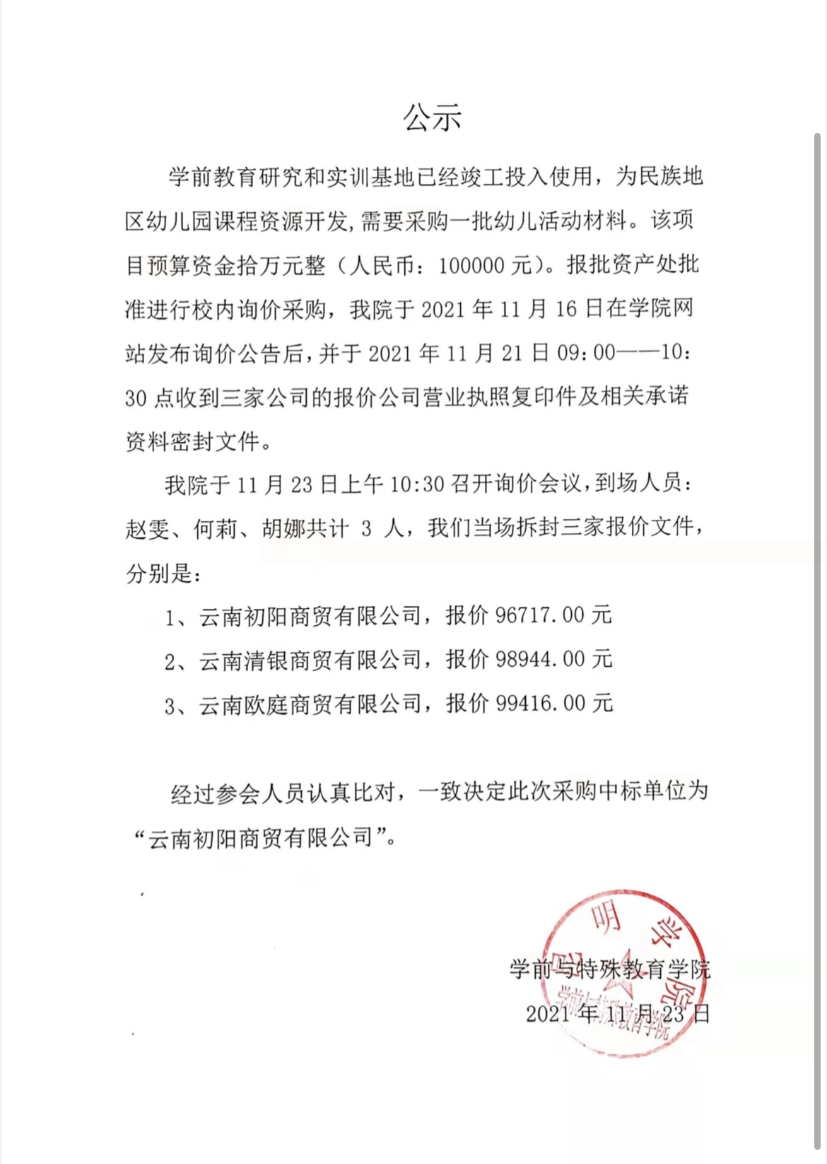 关于英国365集团公司幼儿活动材料项目中标单位的公示