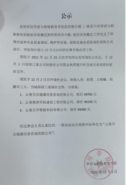 关于英国365集团公司实验实训室搬迁项目中标单位的公示