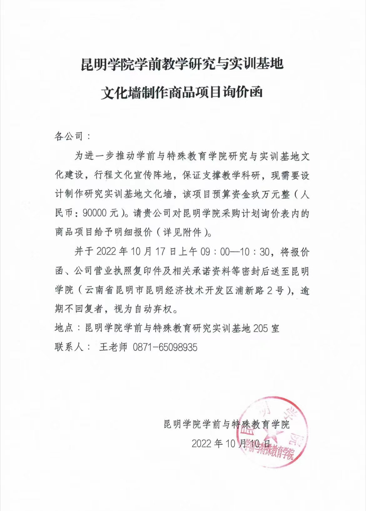 英国365集团公司学前教学研究与实训基地文化墙制作商品项目询价函