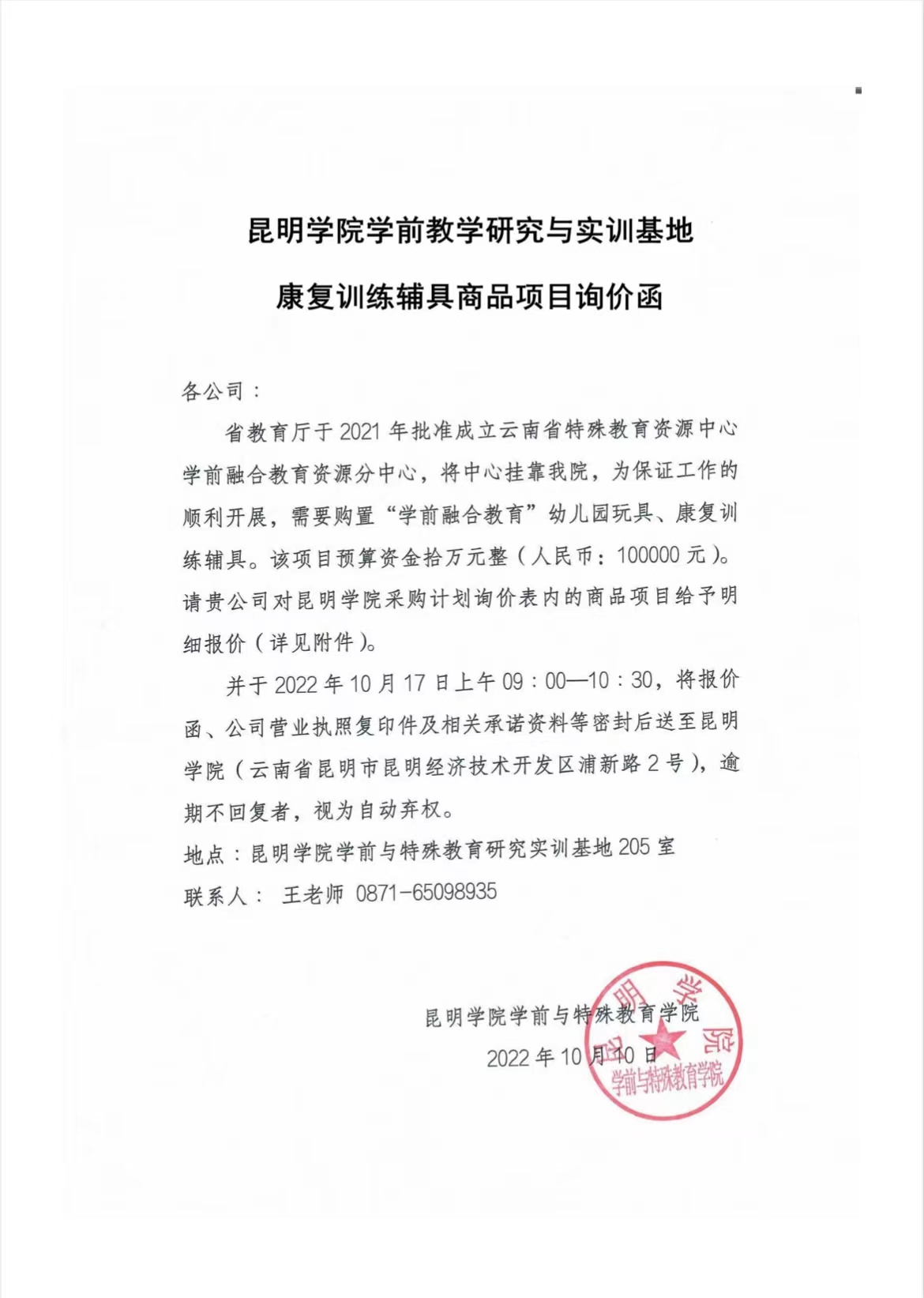 英国365集团公司学前教学研究与实训基地康复训练辅具商品项目询价函