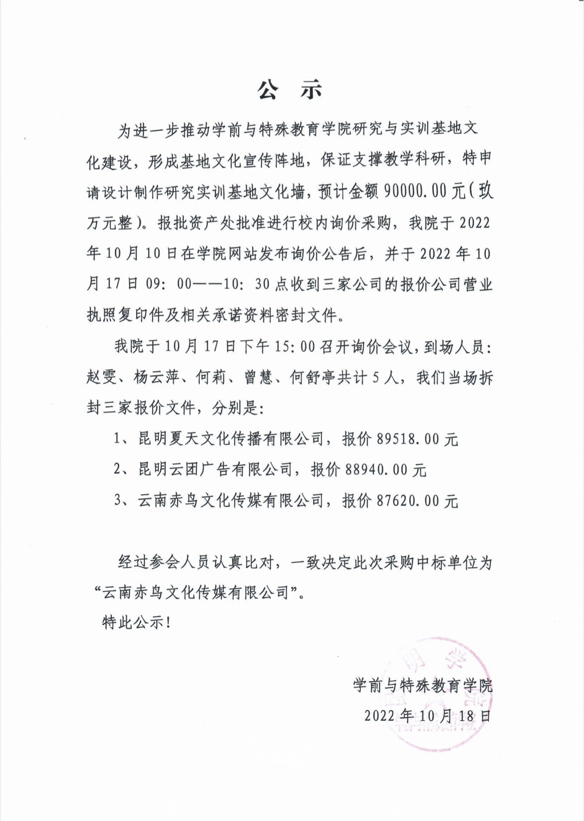 关于英国365集团公司学前教学研究与实训基地文化墙制作商品项目中标单位的公示