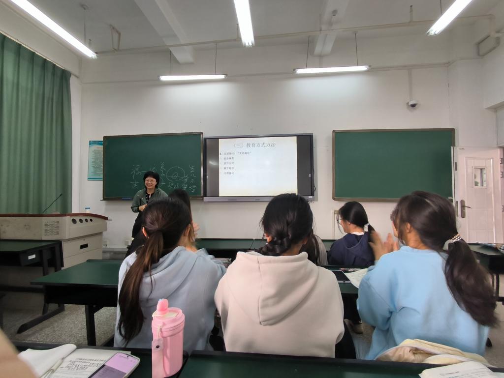 胡福贞副教授对公司即将参加“田家炳杯”决赛的两位同学进行了赛前辅导,针对参赛教案提出了修改建议,强调教案应体现教学理念并注重实际效果,以促进儿童全面发展。随后,胡福贞副教授还对教学技能大赛的核心要点进行了深入剖析,在教学过程中,不仅要注重知识的传授,还要关注儿童情感和意志品质的培养。胡福贞副教授还从学前教育专业本科生课程《学前教育史》之“史前学前教育产生的社会境遇”等视角解读了学前教育的源与流,展示了西南大学教育学部研究型课堂教学风貌,给公司师生做了生动的教学示范,提供了学习引领。