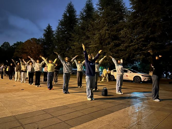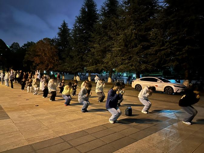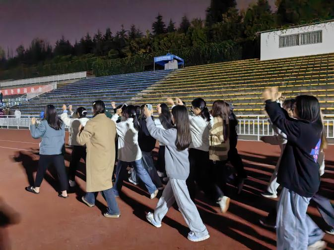 广播体操的赛前训练也在紧锣密鼓地进行。同学们在博识楼前的空地上整齐列队,随着音乐的节奏,动作规范有力,展现出了良好的体育风貌。