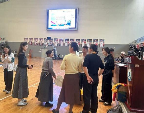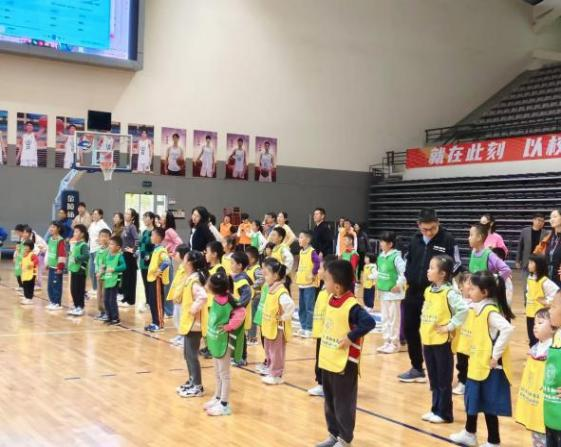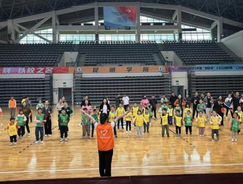 运动会当天,伴随着欢快的音乐,家长们带着孩子进场签到并领取比赛服装。志愿者带领小运动员们做热身操,一同参与“赶鸭子活动”和“神龙摆尾活动”。