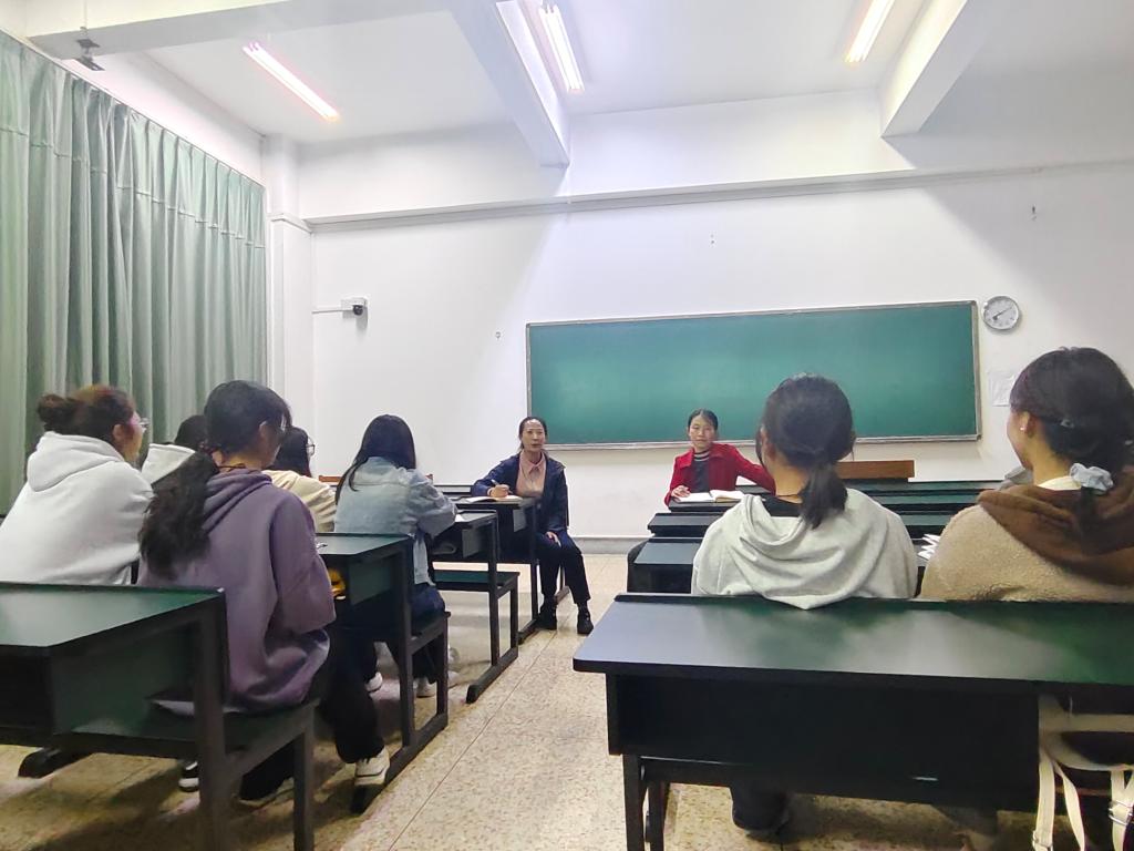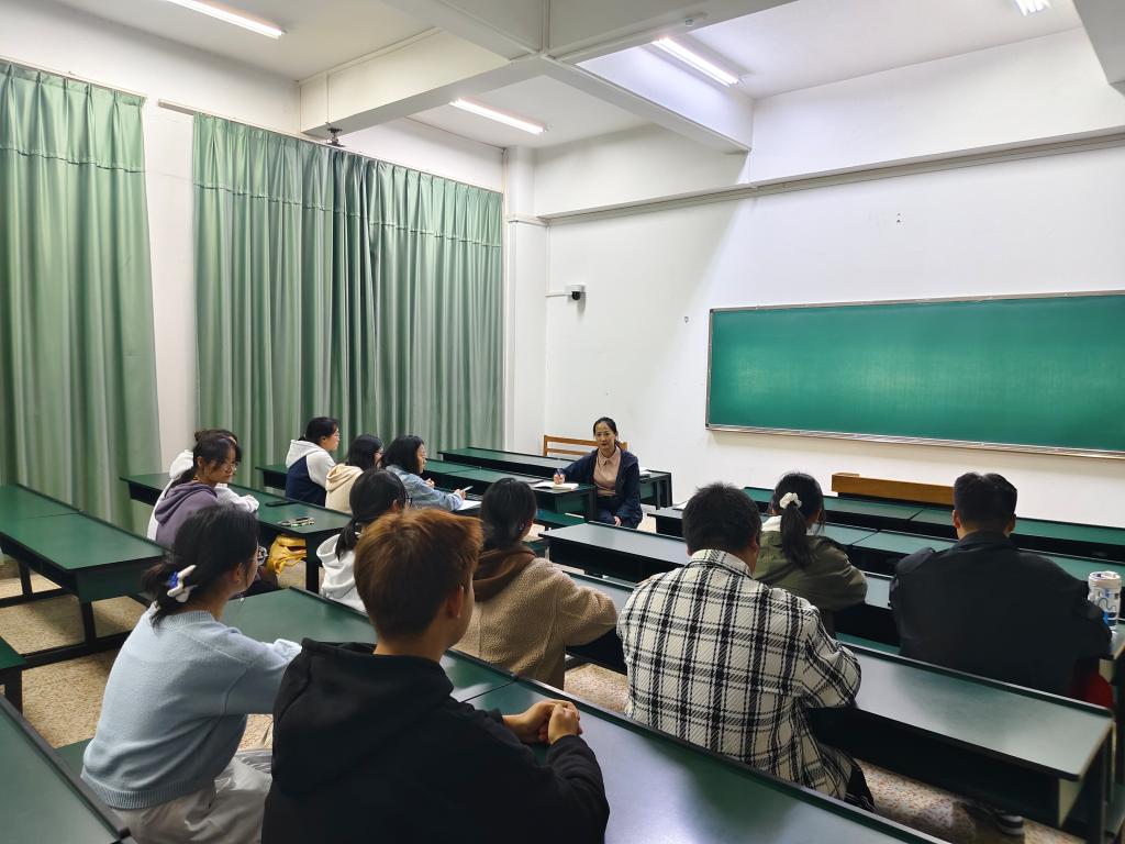 2024年10月29日20:00,学前与特殊教育公司党委书记刘娟娟在博文楼2112教室和2024级新生班委座谈交流。年级辅导员李彩彦老师,2024级各班班长和团支书16人参加。